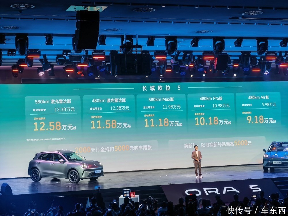 此次推出的长城欧拉5共有5款车型,建议零售价为9.98万-13.38万元,限时换新价为9.18万-12.58万元。